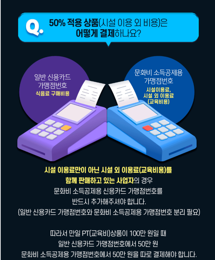 - 전체 결제액의 50%만 시설 이용료로 인정