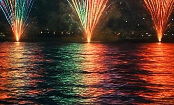 • 구도 : 불꽃만이 아니라 도심 스카이라인·교량 함께 담기