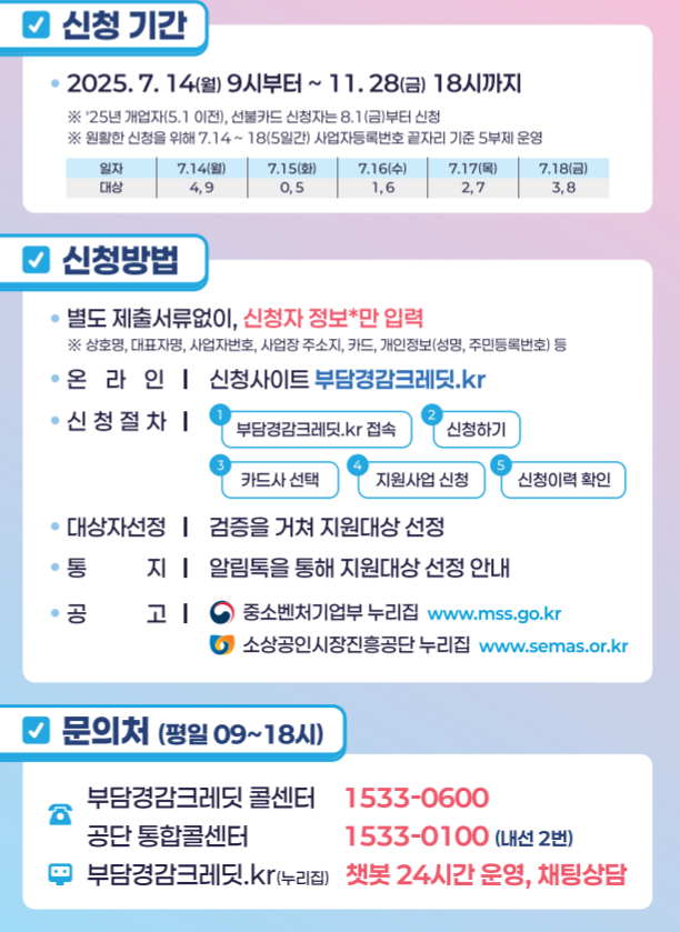 • 신청 기간: 2025년 7월 14일 ~ 11월 28일 (신규 창업자는 8월 1일부터)
