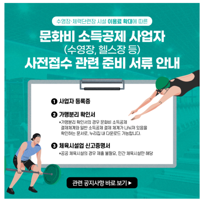 - ✅ 등록된 시설인지 확인: 문화비 소득공제 사업자로 등록된 체육시설 이용