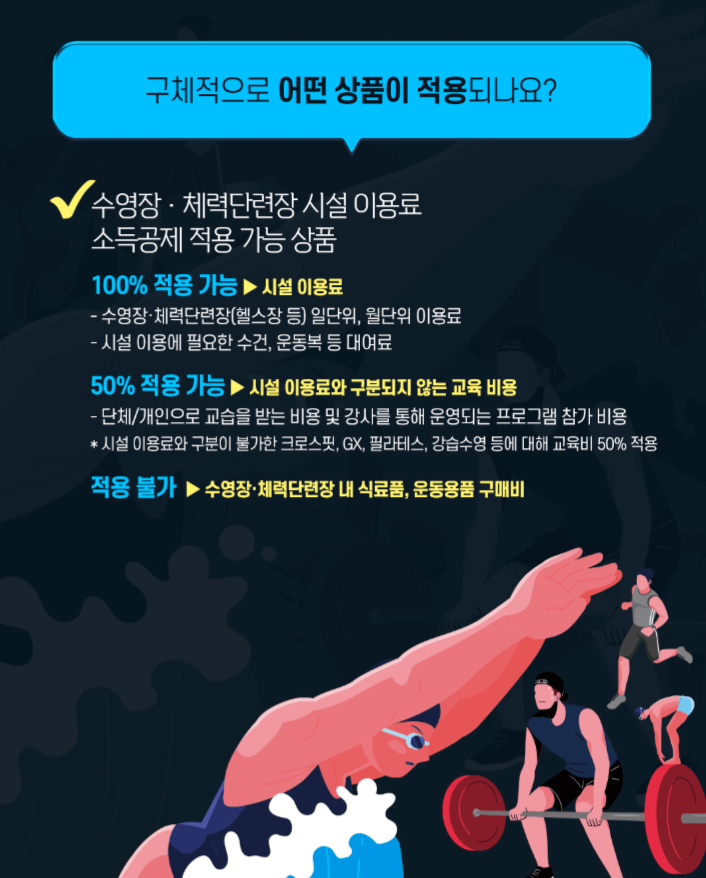 2025년 7월부터 헬스장·수영장 이용료의 30%가 소득공제 대상에 포함됩니다.