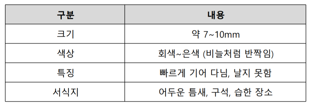 🧠 TIP: 불을 켰을 때 벽이나 바닥을 빠르게 기어가는 은색 벌레가 보였다면, 그게 바로 좀벌레입니다!
